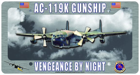 The AC-119K Stinger of the 18th SOS is shown on a late evening mission or coming in at early dawn. The 18th SOS Logo is in the lower right.