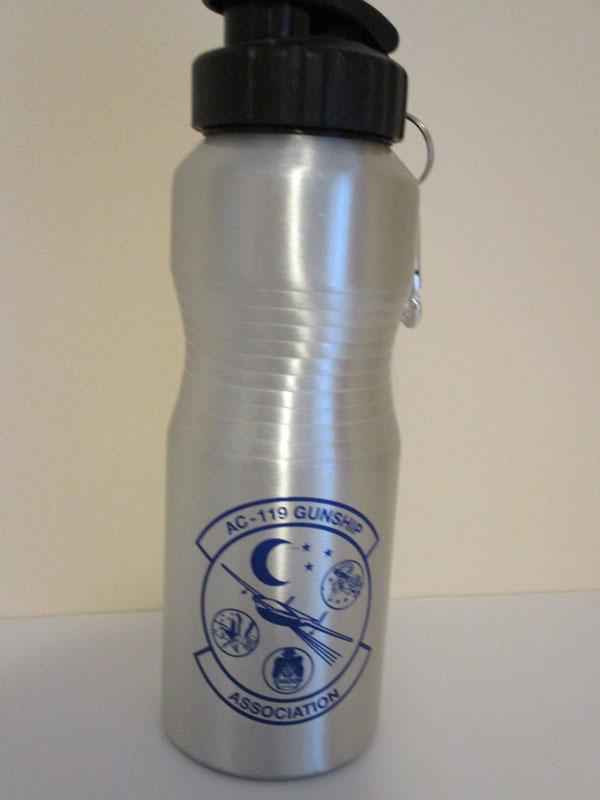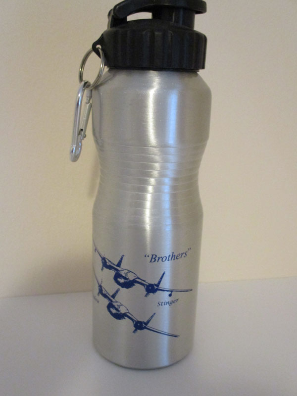 Great looking water bottle to carry on your belt or bike. Bill Petrie’s “Brothers” on one side and the Association patch on the other.